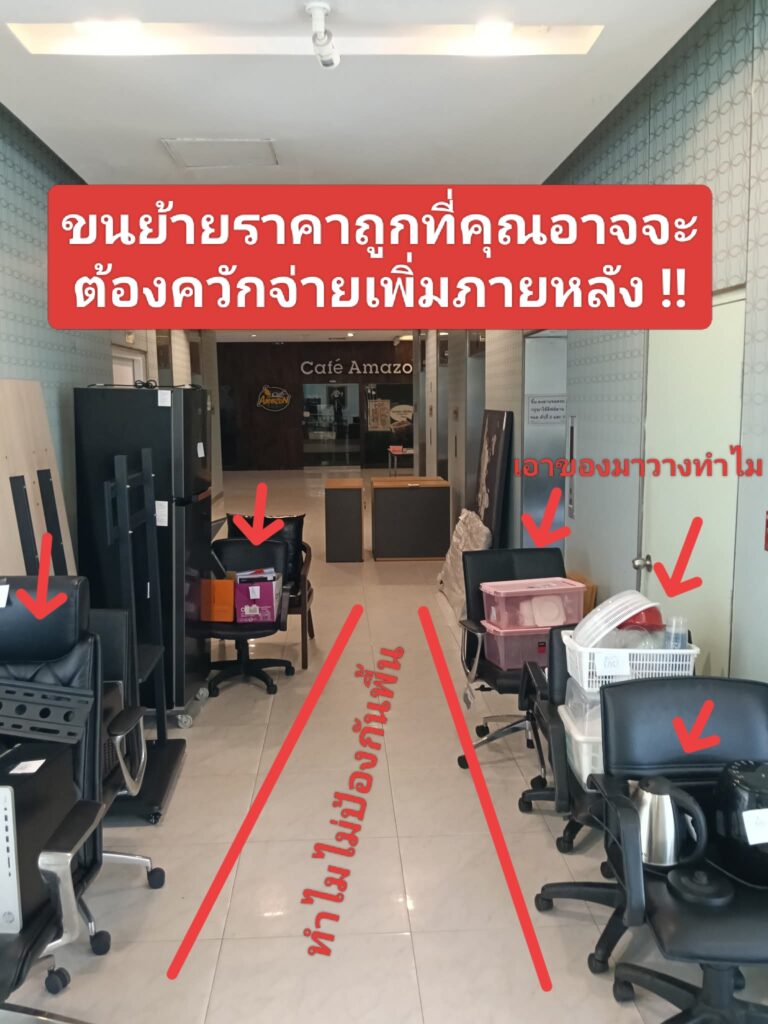 - ⚠️ จุดเสี่ยง: การลากของสดๆ บนพื้น หรือในลิฟท์ บางครั้งทิ้งรอยครูดและรอยดำไว้เป็นที่ระลึก เตรียมตัวโดนนิติฯ ปรับเงินหมื่นได้เลย แถมบางรายไม่ได้รับประกันในส่วนนี้ด้วย ลูกค้าอาจจะต้องมาควักจ่ายเองภายหลัง ซึ่งแพงกว่าค่าขนย้ายอีก