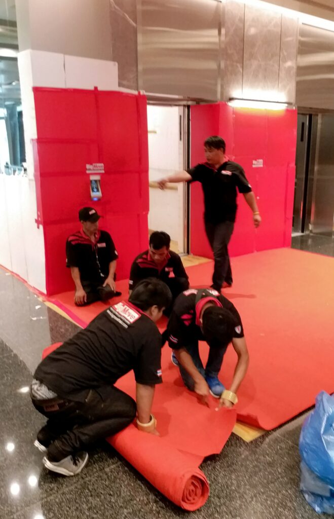 - ✅ มาตรฐานเรา: เราปูพรมอัดสีแดง ป้องกันพื้น และใช้วัสดุอย่างดีป้องกันตามประตูและผนังลิฟท์ตลอดการขนย้าย มั่นใจได้ว่า สถานที่นั้นปลอดภัยไร้กังวล หรือ หากมีความเสียหาย เราก็พร้อมรับผิดชอบ 100% ของราคาค่าบริการขนย้าย