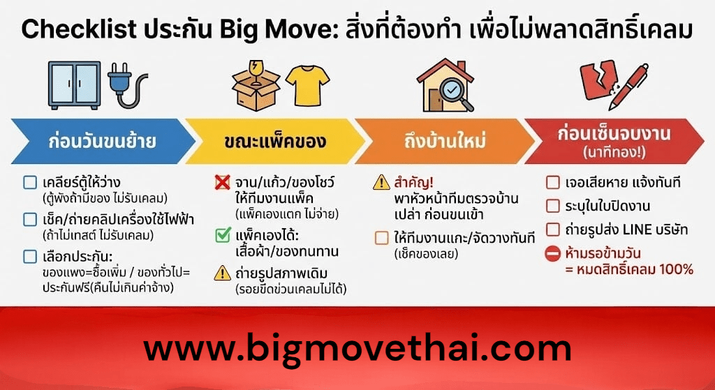 - [ ] ทำใจเรื่องรอย: ถ่ายรูปสภาพเฟอร์นิเจอร์เดิมไว้ แต่จำไว้ว่า “รอยขีดข่วน” เคลมไม่ได้ (เขาจ่ายเฉพาะ แตก/หัก)